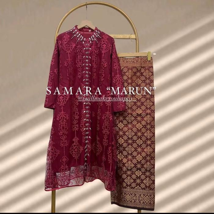 Kebaya Tunik Tille Premium//Kebaya Wisuda//Kebaya Kondangan - Burgundy, M