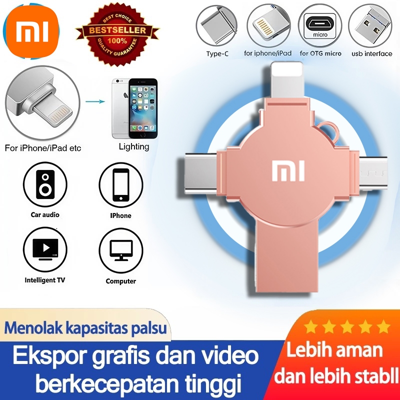 [TOMUA]U401 2TB Flashdisk OTG 4-in-1: Kompatibel dengan iPhone 6-17, USB 3.0, Micro USB, Type C, Lightning, Flash Drive