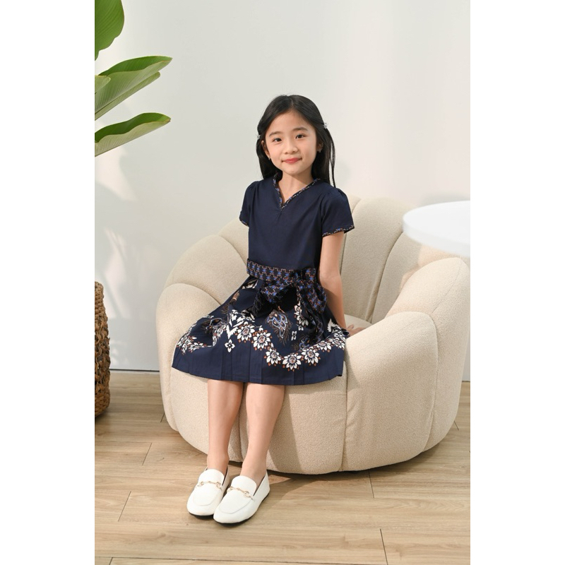 [PROMO] Baju batik anak modern Dress batik anak cewek Kemeja batik anak cowok dress imlek anak NAVY PEA
