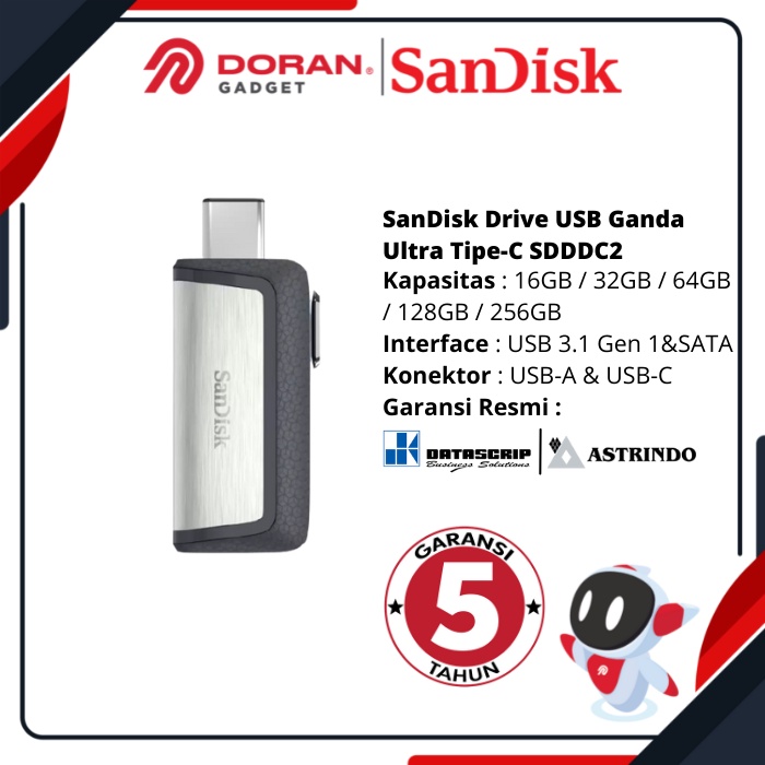 Flashdisk Flash Disk OTG USB Type C 16 32 64 128 256 GB | 16GB 32GB 64GB 128GB 256GB Sandisk Dual Drive SDDDC2 - Garansi