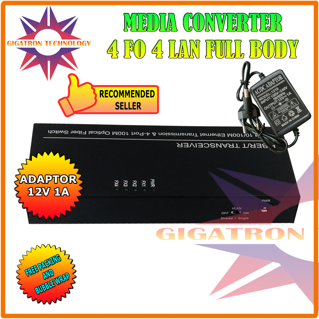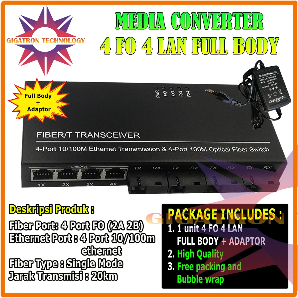 Media Converter Fiber Optic 4 Port FO 4 Port LAN 10/100 Full Body / Switch Fiber Optik 4 FO 4 LAN Single Mode Casing / 4 SC 4 RJ45 / 4F4E