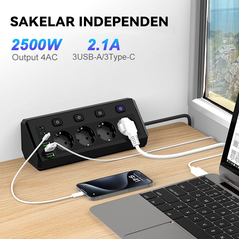 [PROMO] 2500W Stop Kontak USB Kabel Serbaguna Multiguna Panjang 2 Meter Original Power So