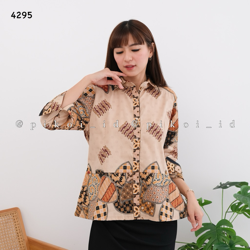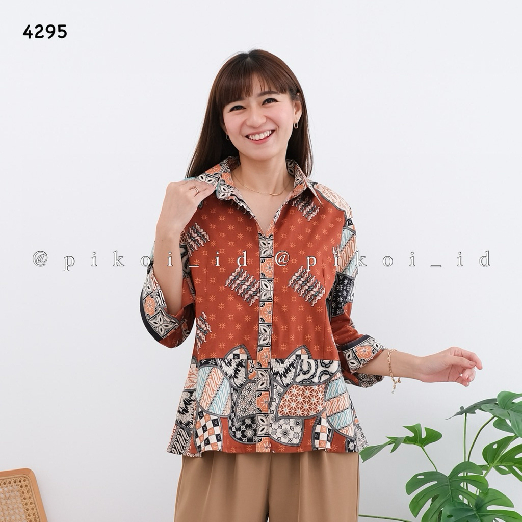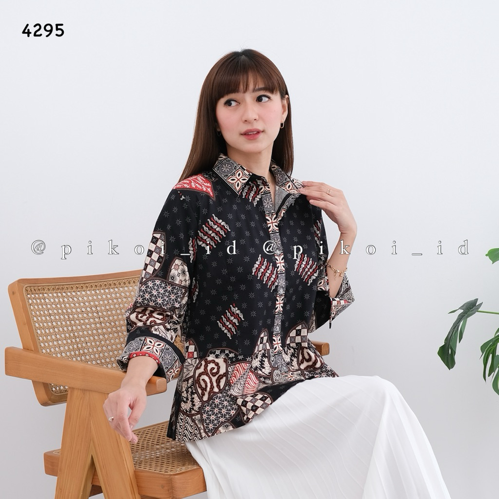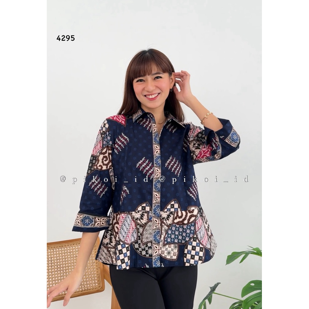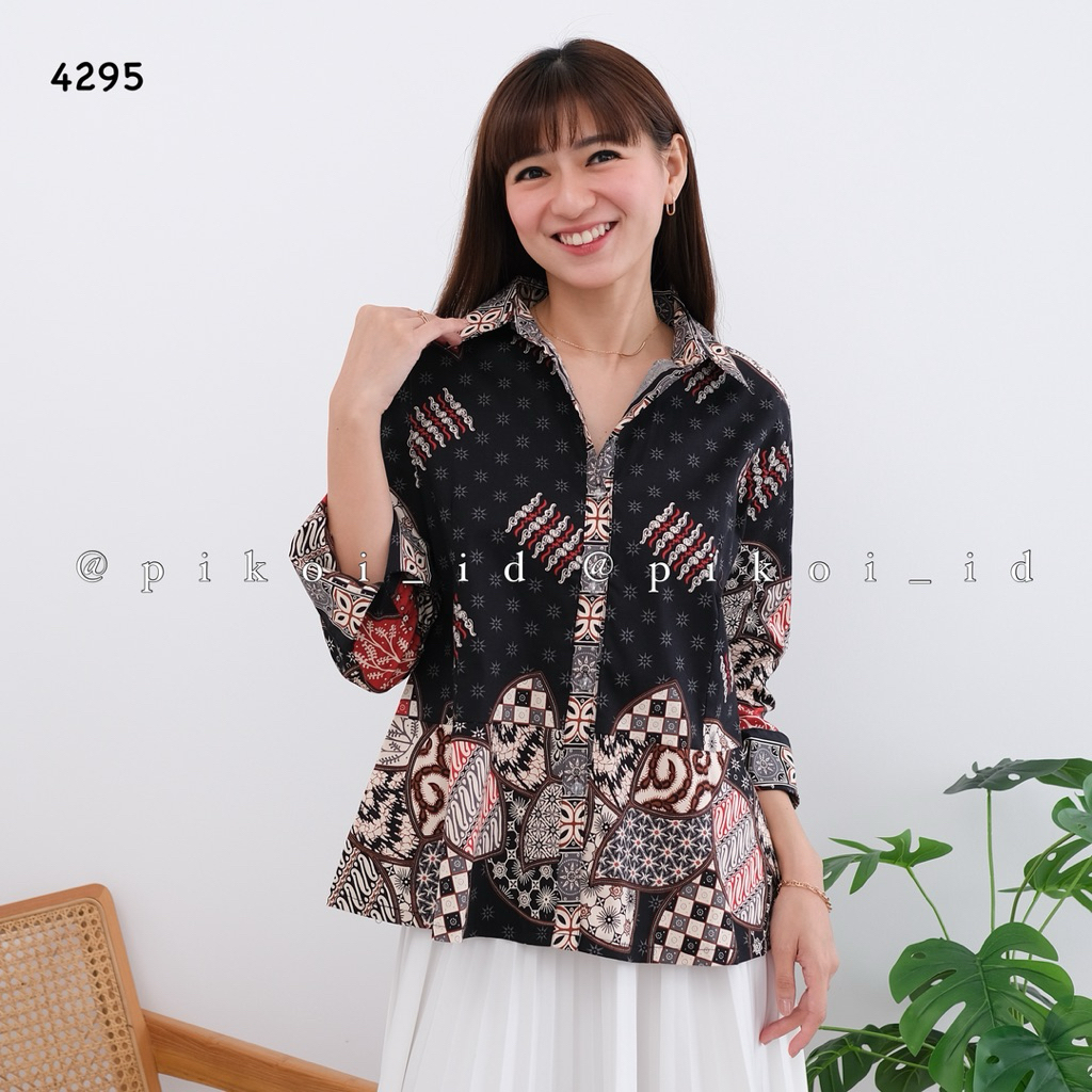 [PROMO] Pikoi_id Atasan batik wanita lengan panjang kerah full kancing seragam batik kantor baju batik lengan panjang berke