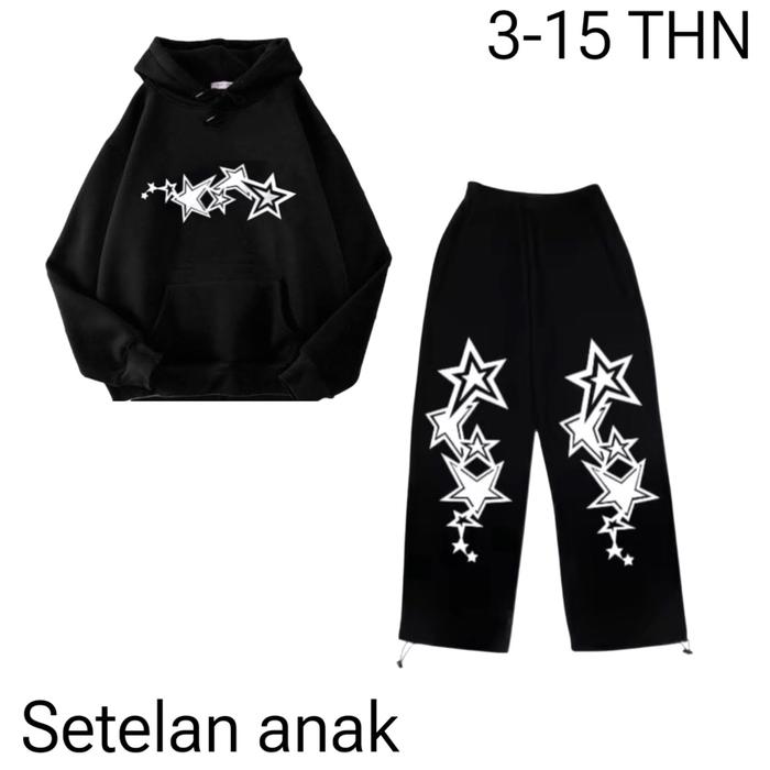 STELAN ANAK SKENA LAKI LAKI PEREMPUAN/CELANA GOMBRANG CASUAL/STELAN CASUAL ANAK GAUL METAL/STELAN HOODIE CELANA BEST SELLER-UMUR 3-15 THN - HODIE & CELANA BINTANG, M (3-4THN)