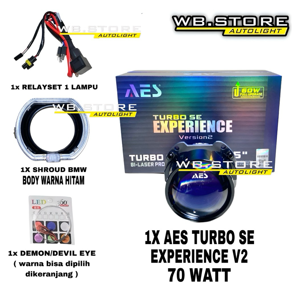 AES TURBO SE EXPERIENCE V2 PAKET ORIGINAL BILED 60watt/70watt SHROUD HITAM & WRGB 2,5