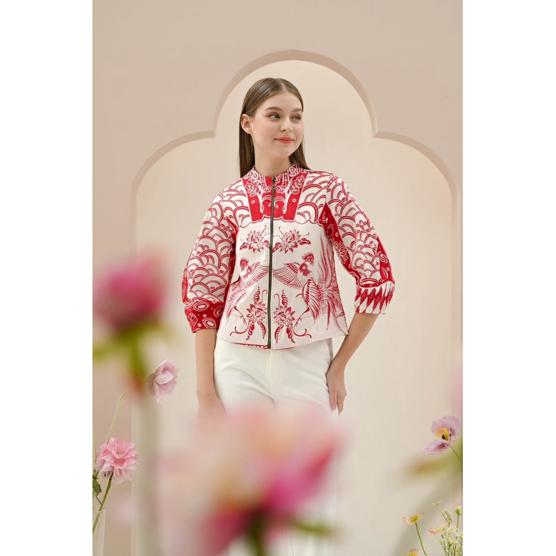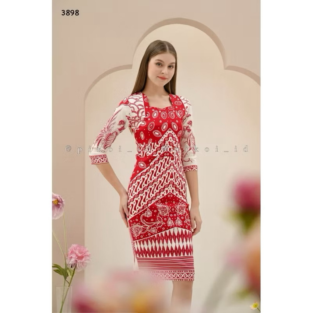 [PROMO] Couple batik merah pria wanita batik sarimbit modern cowok cewek atasan wanita merah peacock 389 RED NUKU