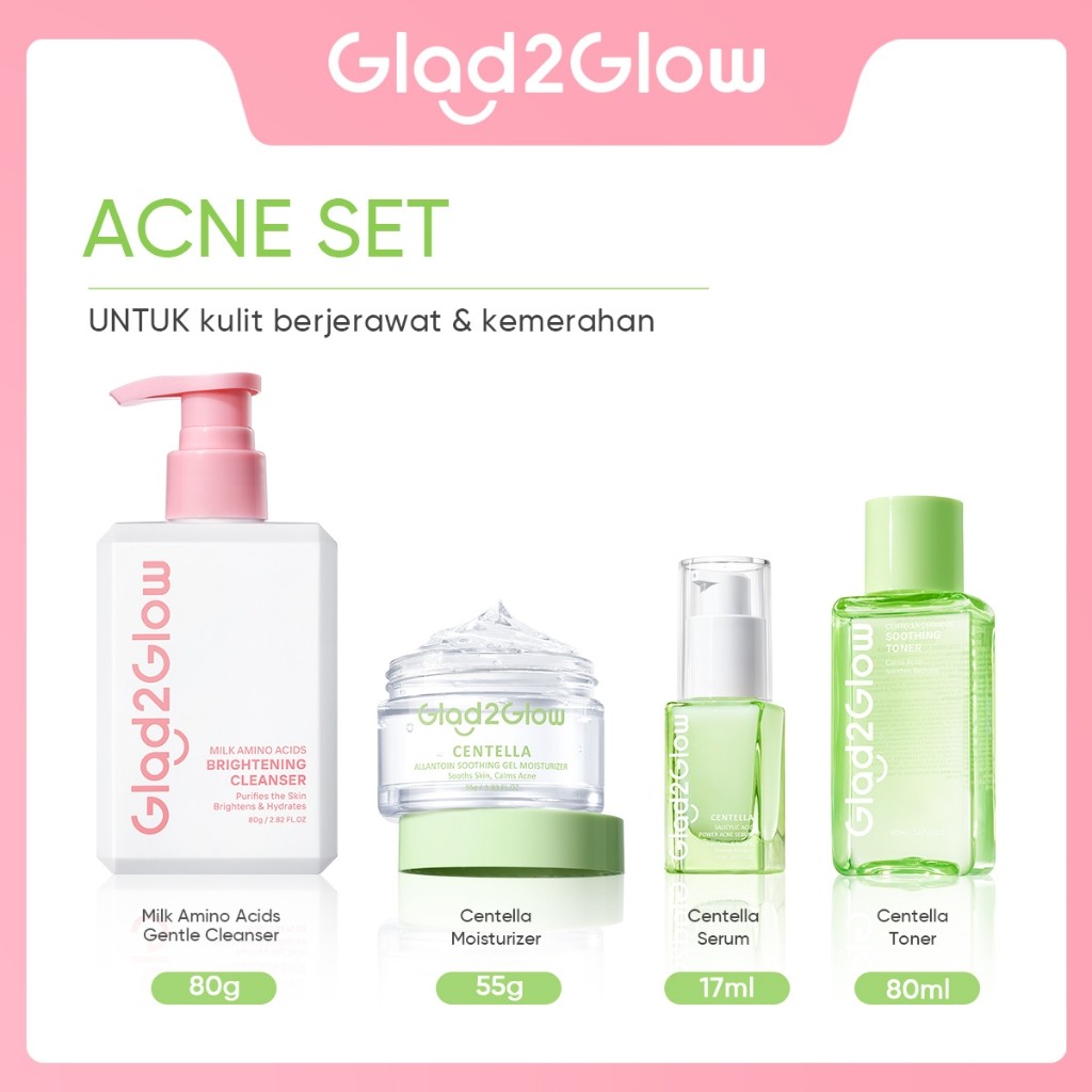 [100 PERSEN ORI]Glad2Glow 4pcs Bundle 4in1 Paket Skincare Moisturizer Serum Face Wash-ACNE KIT GLOWING KIT Dark Spot VC Bright Barrier Set