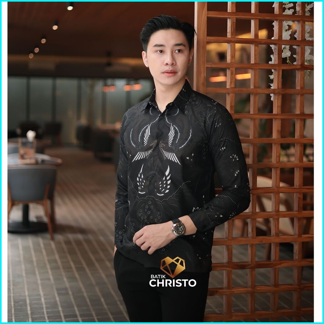 Kemeja Batik Pria Baju Lengan Panjang Slimfit Lapis Furing Batik Christo 0134 Bahan Katun Premium Elegan Motif Formal