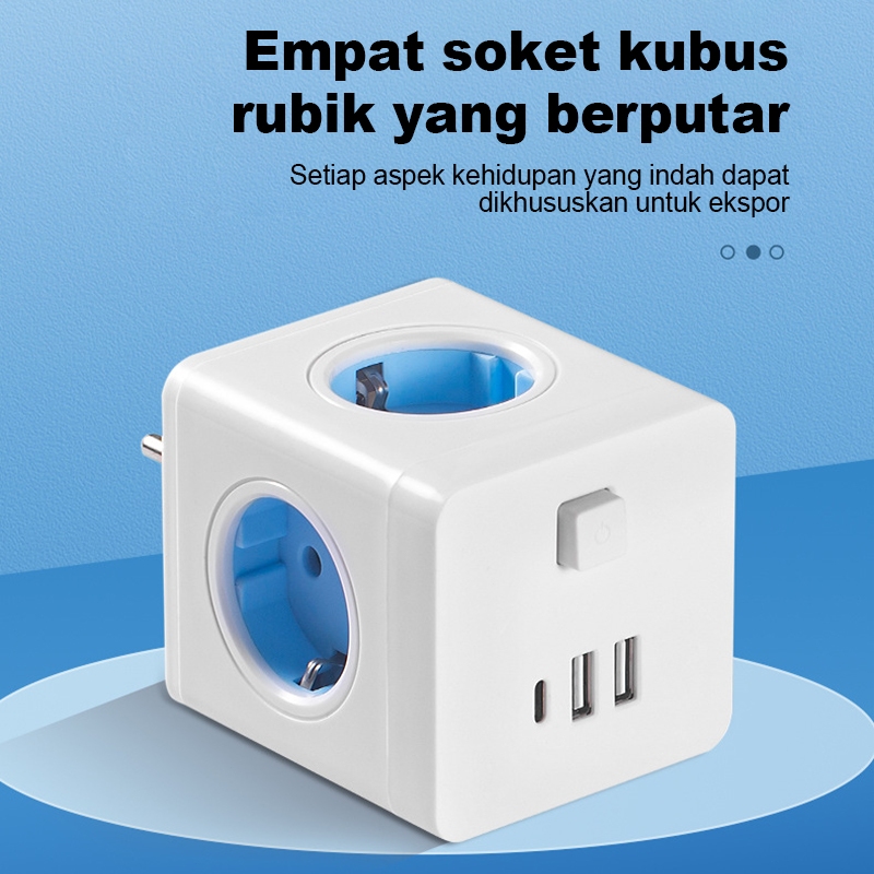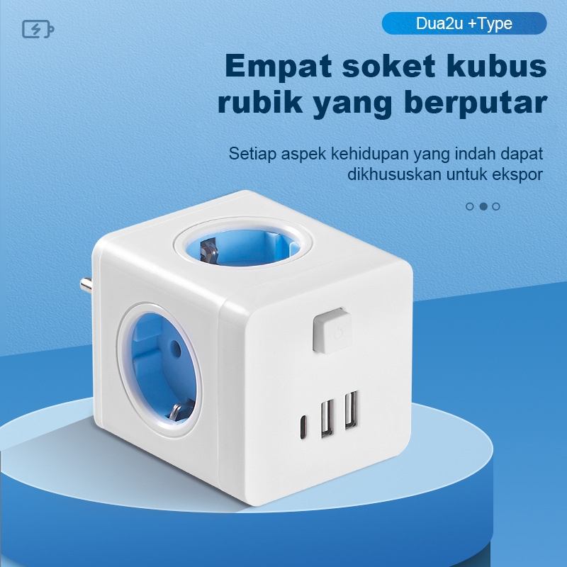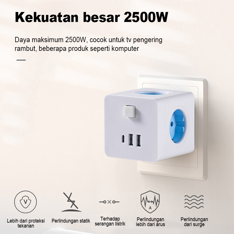 [PROMO] Stop kontak colokan listrik kubus 7in1 USB+Type C Fast charging Daya Max 2500W