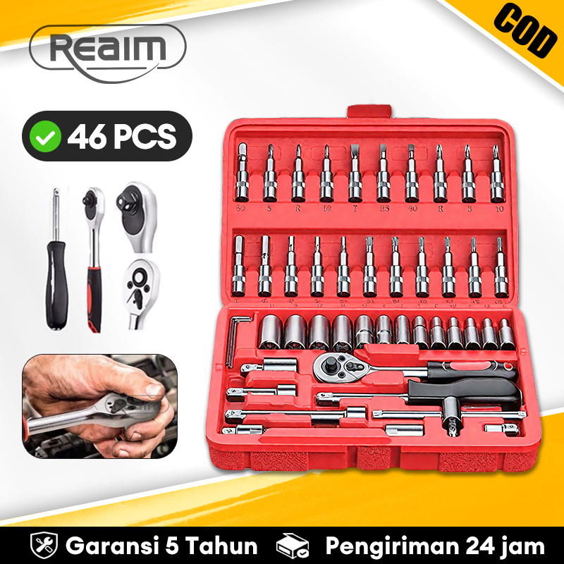 [PROMO] Reaim 46pcs Tool Kit Set Kunci Shock Set alat kunci pas 46pcs kunci Mata Sok leng