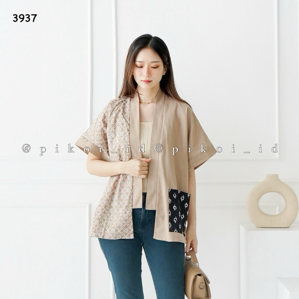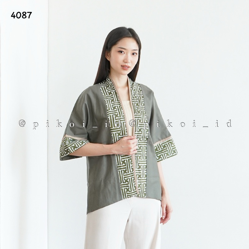 [PROMO] Cardigan batik wanita modern katun linen polosan Outer etnik wanita simple lengan panjang 241 caro