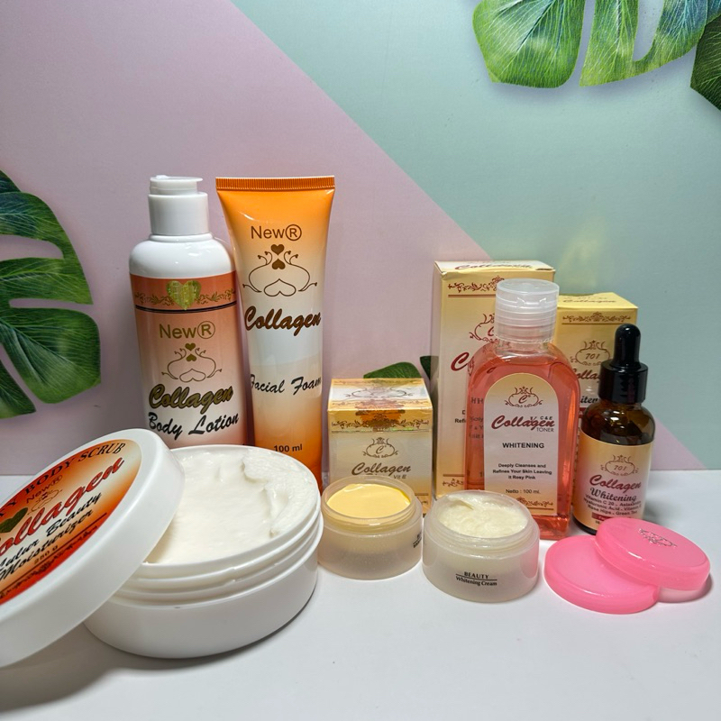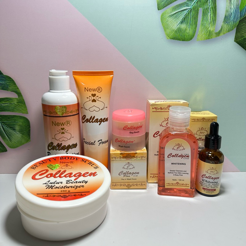 Termurah Paket lengkap perawatan wajah dan tubuh collagen 7in1 ( cream siang, malam, fal foam, toner, serum, lotion, body scrub )