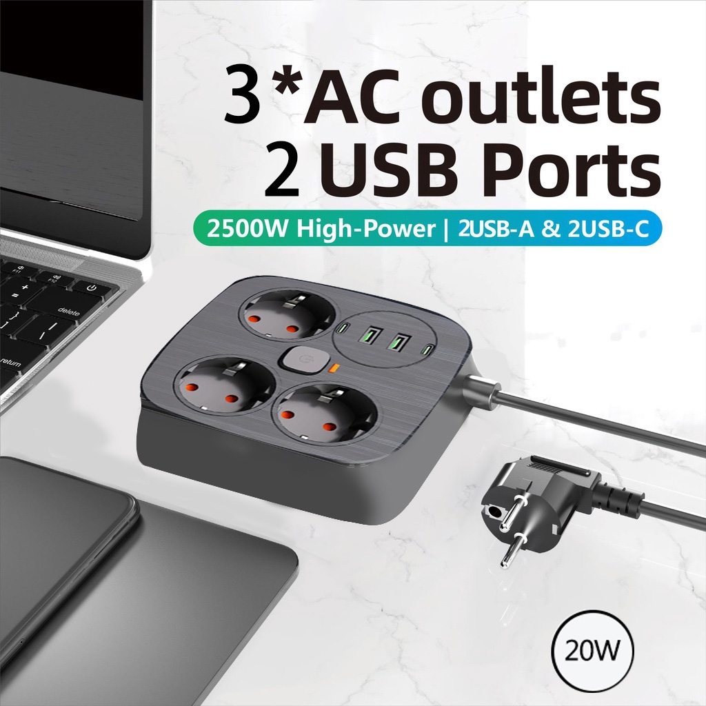 [PROMO] 20W Fast Charger 2 TYPEC + 2 USB USB Adaptor Power Kabel USB HUB 2 Meter Original