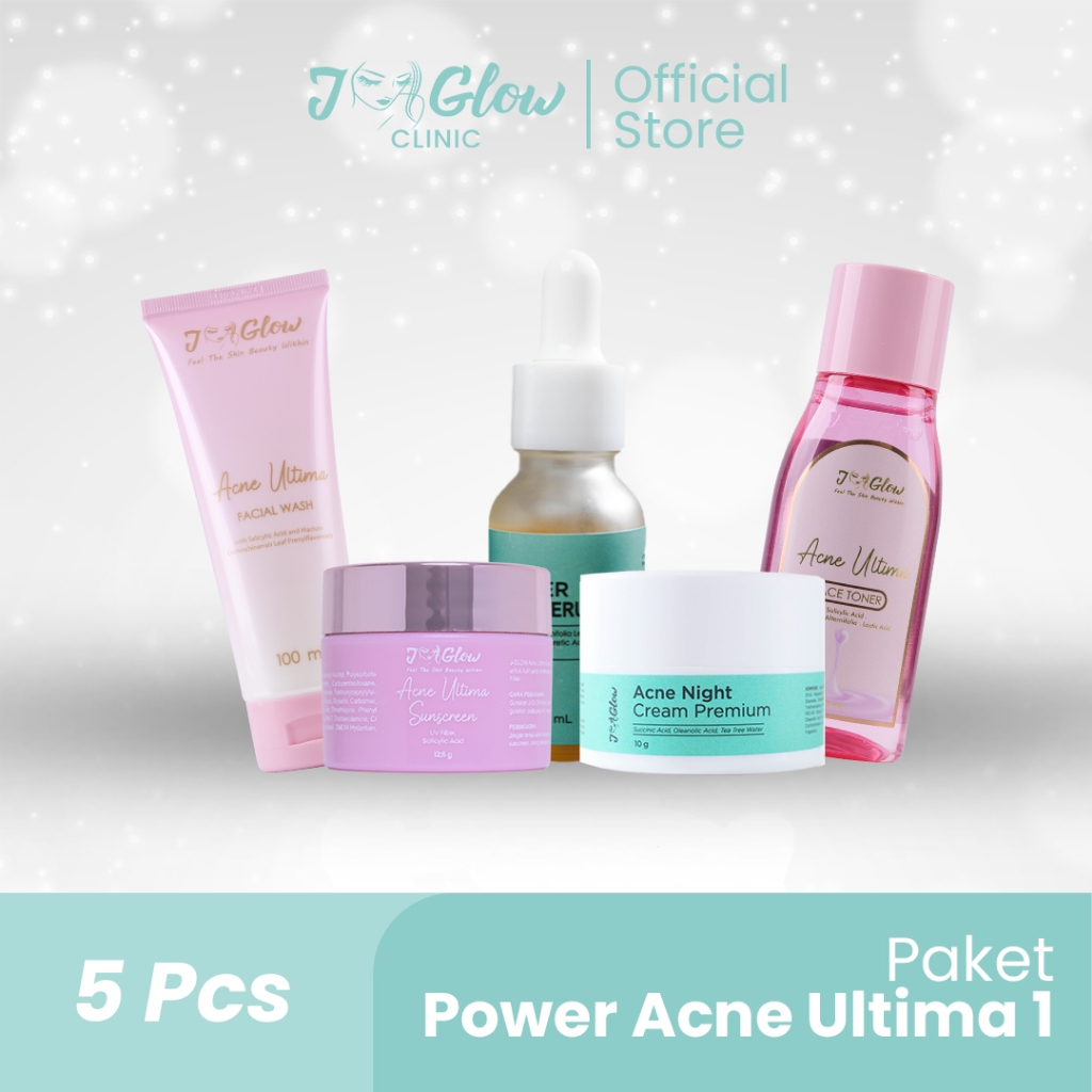 JGLOW CLINIC Paket Power Acne 1 | Paket Acne Ultima Type 1 Perawatan untuk wajah Berjerawat dan Berminyak - 5pcs