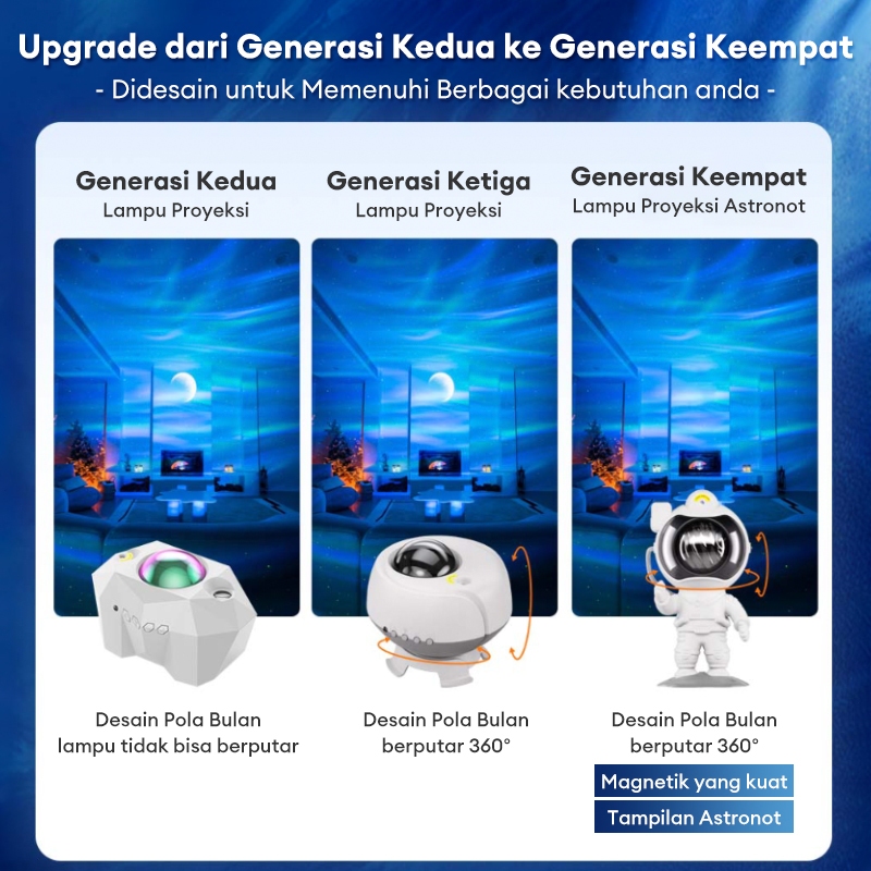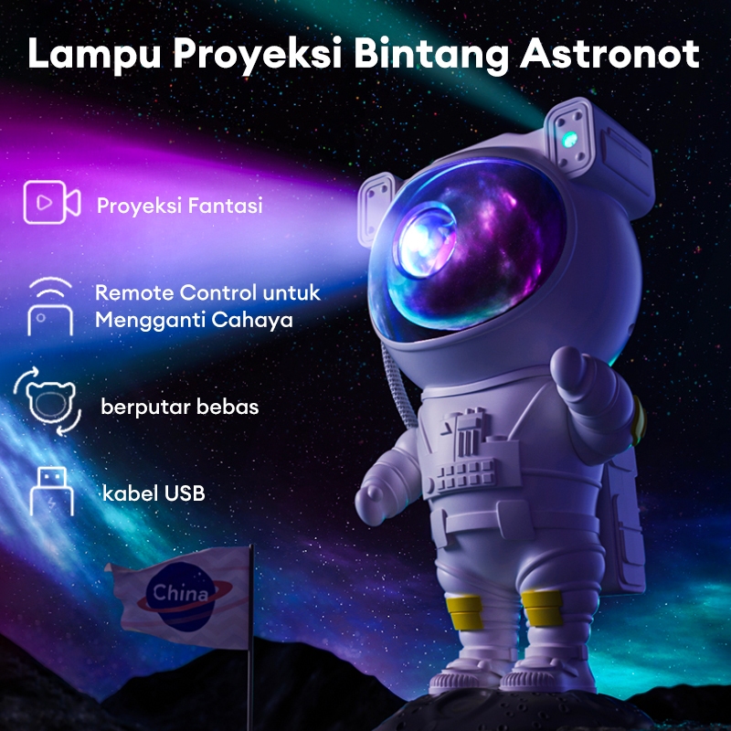 Garansi 10 tahun Lampu tidur aesthetic lampu proyektor Hadiah Natal Ulang Tahun Lampu Atmosfer Astronot Proyektor Bintang Galaksi