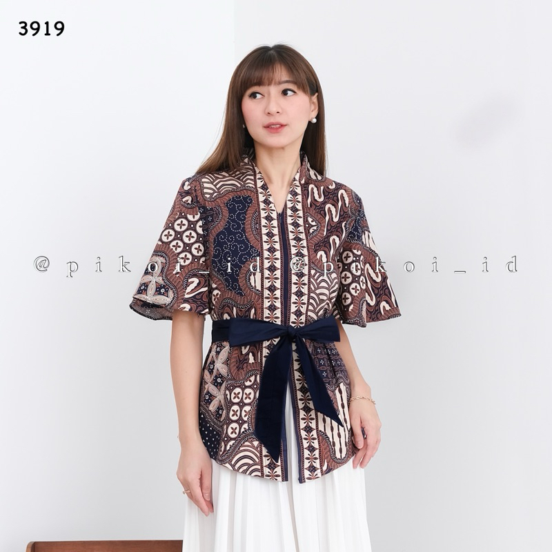 [PROMO] Atasan batik wanita modern lengan pendek baju kimono batik wanita ikat tali LENTINI PENDEK 3919