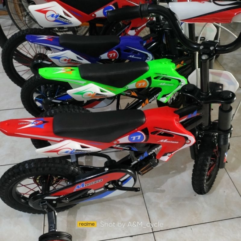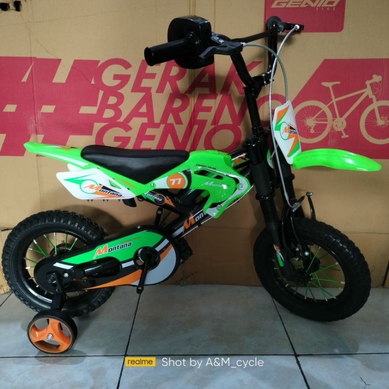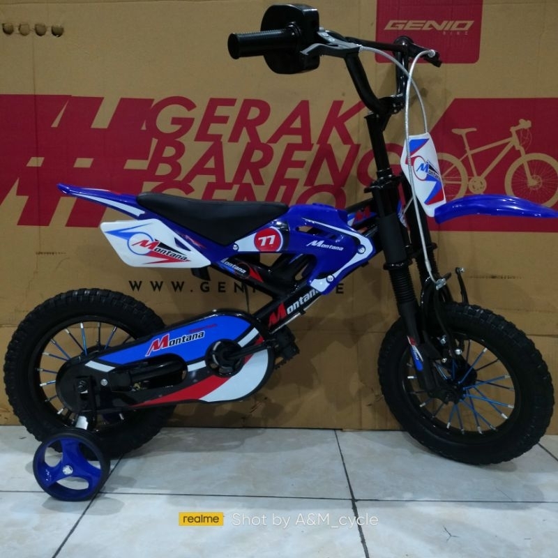 Sepeda anak laki laki 12 inchi BMX Montana cross trail 4 roda sepeda anak trail model motocross sepeda trail anak bel ga