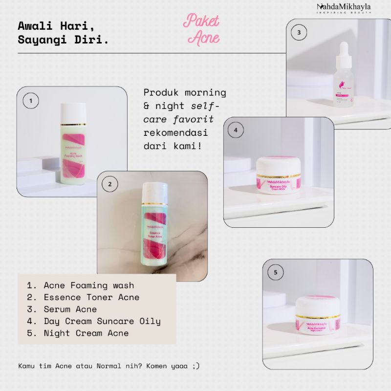 NAHDA SKINCARE ECER MEMBERSIHKAN JERAWAT CREAM MALAM/CREAM SIANG/TONER/FOAMING WASH 100 PERSEN Original