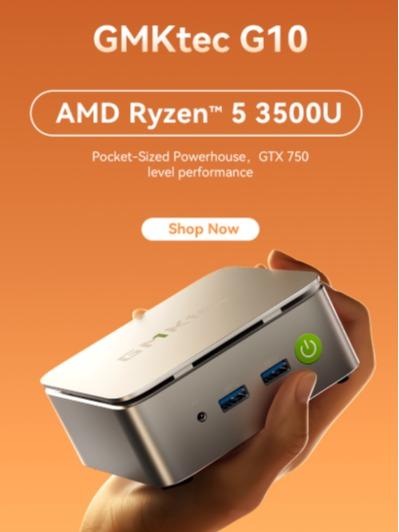 MINI PC GAMING GMKTEC NUCBOX G10 AMD RYZEN5 3500U SSD TRIPLE DISPLAY 4K HDMI DP USB TYPE-C WIFI WINDOWS 11 PRO - 8/256GB
