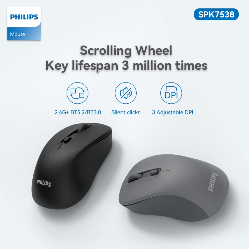 Philips Mouse Dual Mode Wireless + Bluetooth Silent Clicks 1600 DPI Original SPK7538 - Garansi Resmi 1 Tahun (2)