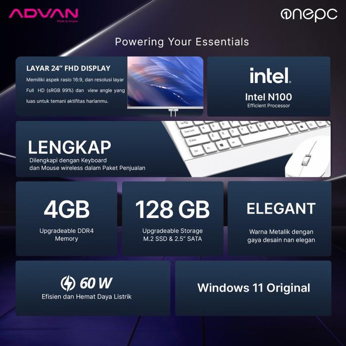 ADVAN ALL IN ONE PC AIO ONEPC INTEL N100 RAM 4GB SSD 128GB WINDOWS 11 ORIGINAL - 4GB, 128GB