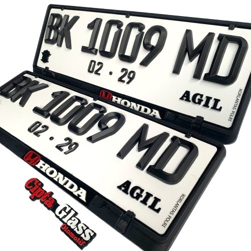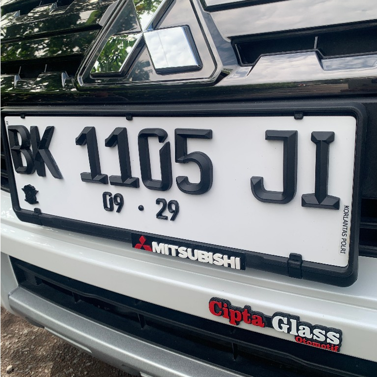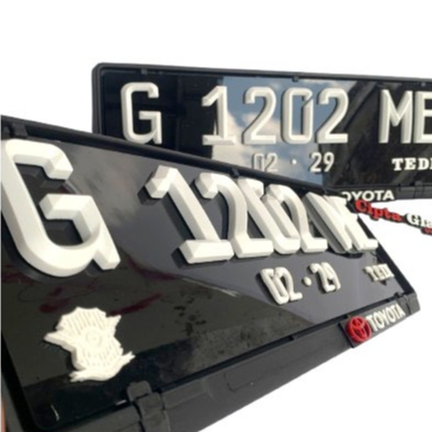 Plat Nomor Mobil Custom Akrilik Timbul FONT BARU FE LANCIP PUTIH Free Cover dengan Label Merk Mobil