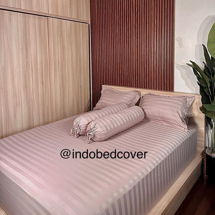 INDOBED TINGGI 30: SPREI HOTEL MICROTENSEL IMPORT ORIGINAL KARET ANTI GESER SET SARUNG BANTAL DAN GULING - DUSTY TUA, 90X200X30