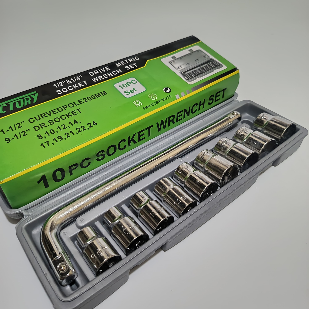 Paket Perkakas Kunci Shock Sok Set 8 Sampai 24 mm 10 Pcs 1/2 6pt Victory + Kunci Ring Pas 1 Set Lengkap Fukung / kunci b