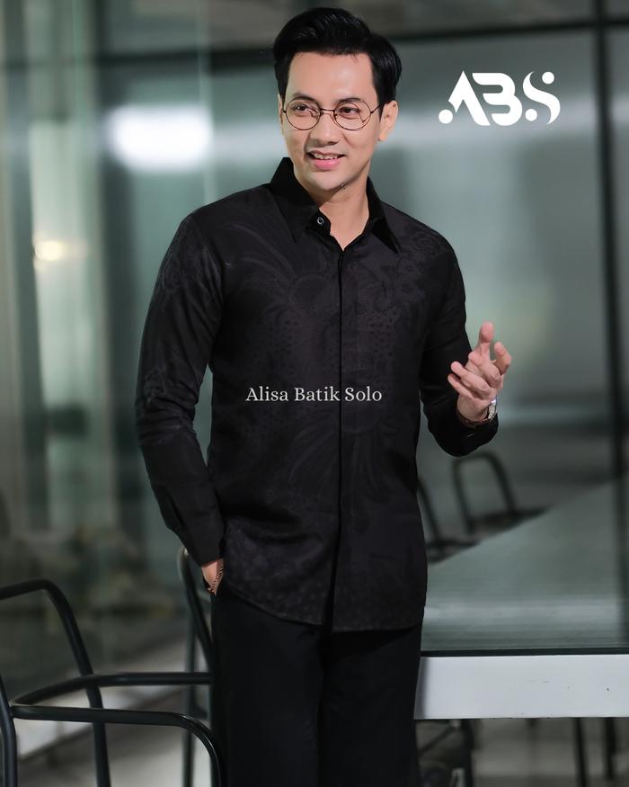 Alisa Batik Solo Slimfit Motif Raja Hitam Kemeja Hem Atasan Batik Panjang Pria Keren Premium Dobby Baju Casual - M