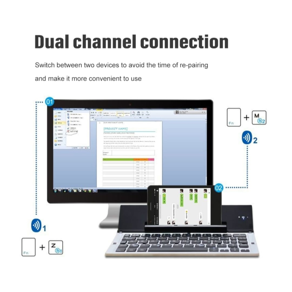 Keyboard Lipat Bluetooth Wireless Stand Hp Multi Smartphone Tablet Kb 029