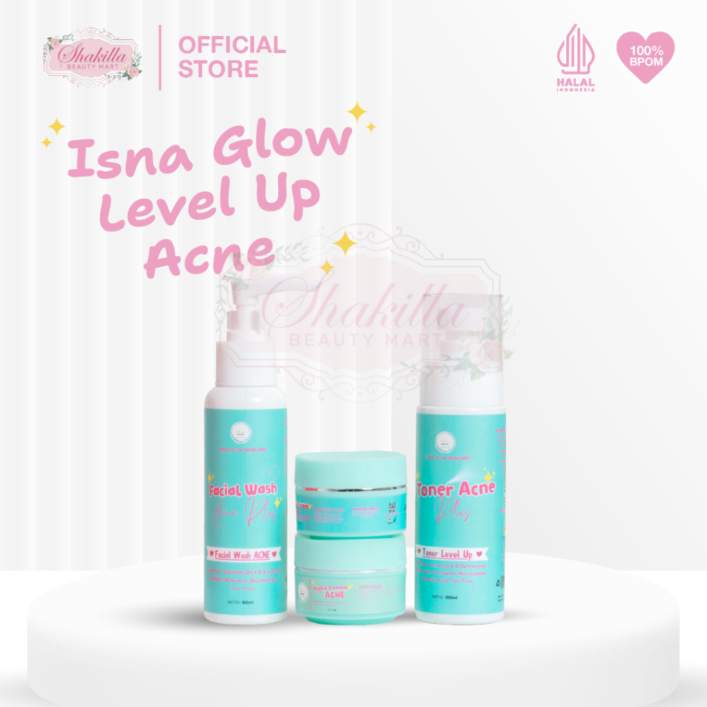 ISNA GLOW SKINCARE - Level Up Normal dan Level Up Acne Skincare untuk Semua Jenis Kulit Mencerahkan Mengatasi Jerawat dan Menyamarkan Noda Hitam