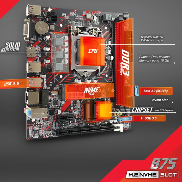Motherboard Varro H61 Plus LGA 1155 Mainboard H61+/B75 Varro USB 3.0 Socket 1155 MOBO Intel LGA1155