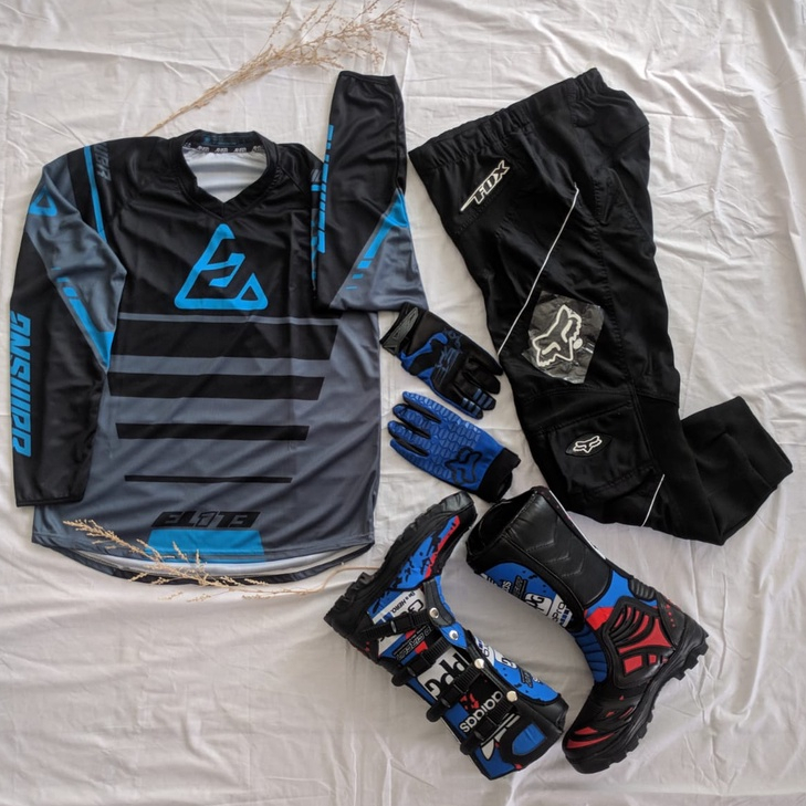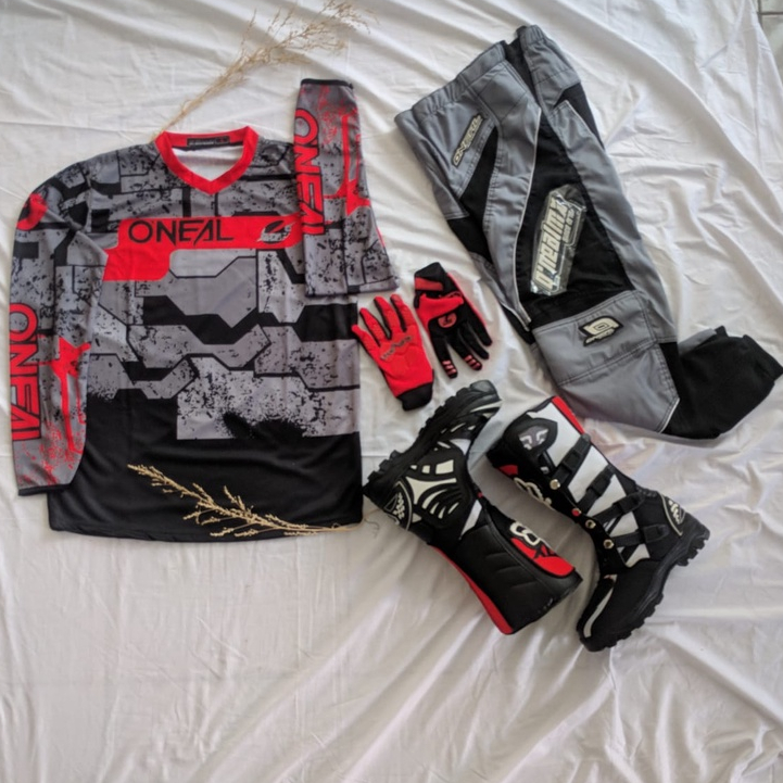 PAKET KOMPLIT STELAN JERSEY SET BAJU CELANA GLOVE DAN SEPATU TRAIL RACING TRABAS SEPEDA MTB