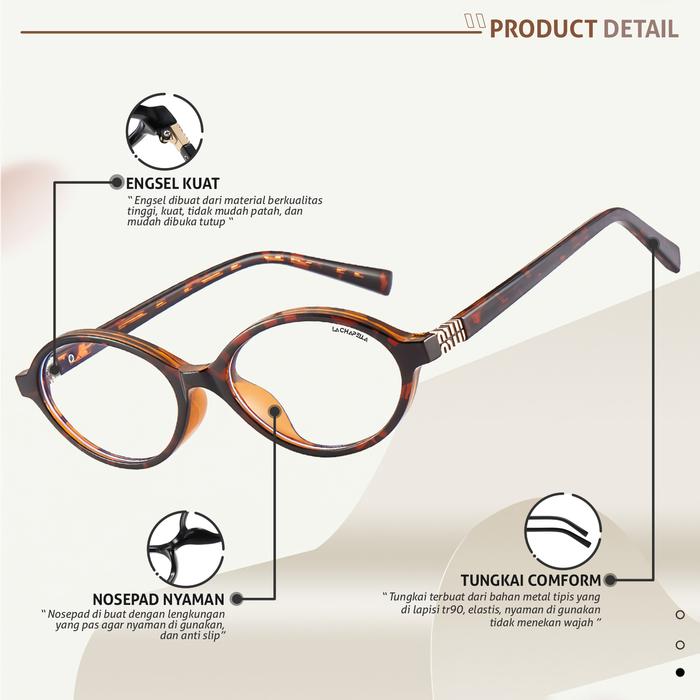 LA CHAPELLA KACAMATA ANTI RADIASI BLUERAY BLUECROMIC OVAL METAL + TR 90 LENTUR RINGAN FASHIONABLE KEKINIAN UNISEX BISA MINUS 11198 - CRYSTAL GREY, FRAME SAJA