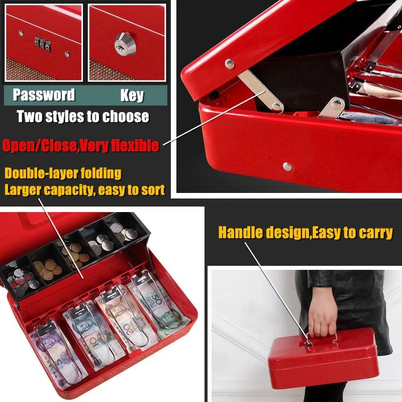 [PROMO] Cash Box Portable Money Safety Box With Lock BlackRed Cash Box Murah Safety Money