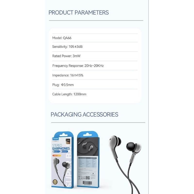 [PROMO] QA66 WIRED EARPHONE INEAR SUPER BASSHEADSET KABEL MODEL KARET 120CM