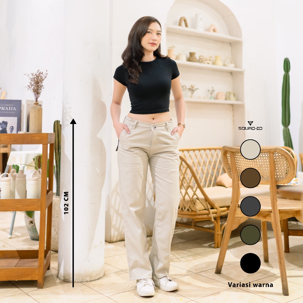 SQ SQUAD ID Celana Chino Panjang Reguler Standar Unisex cewe/cowo Straight Fit Panjang Pria Celana Chinos Cinos Panjang Loose Baggy Kombor Lebar Lurus