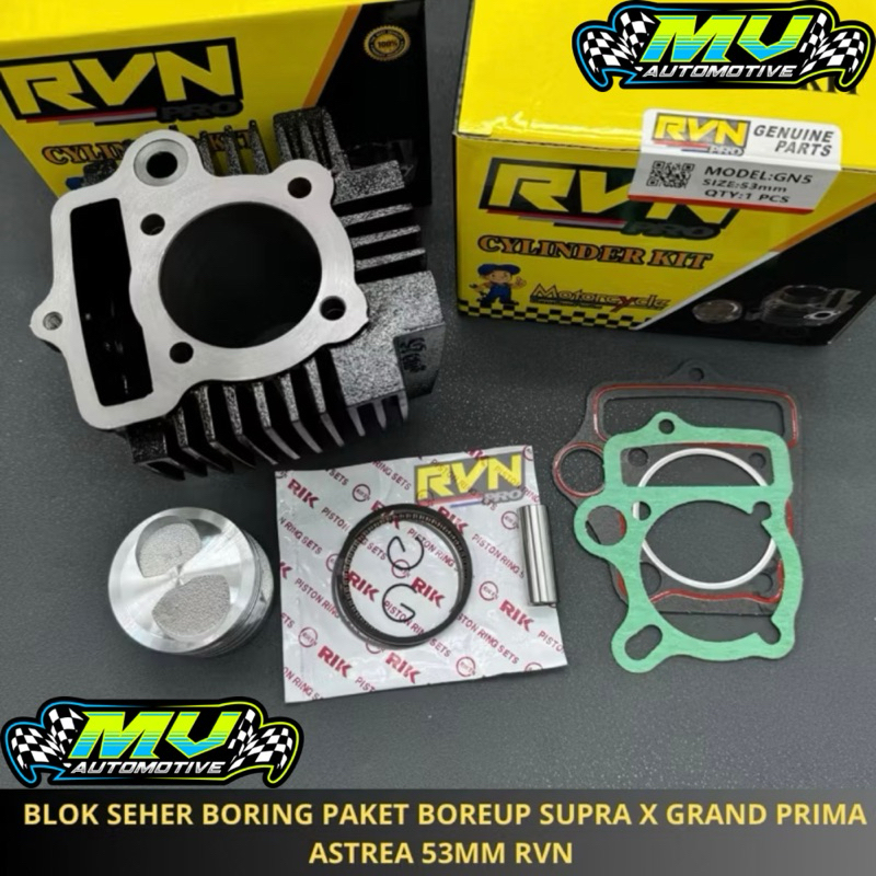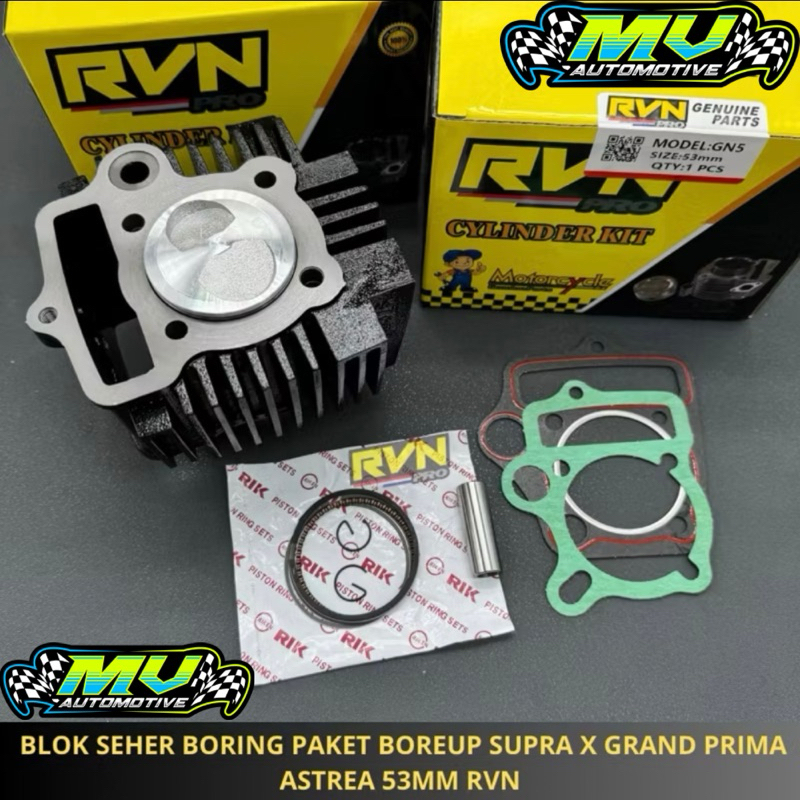 BLOK SEHER BLOCK SEHER BORING STD 50MM - BORE UP 53 MM KOMPLIT ISI PISTON KIT HONDA SUPRA X GRAND ASTREA PRIMA WIN GN5 ORIGINAL RVN BONUS FREE PAKING