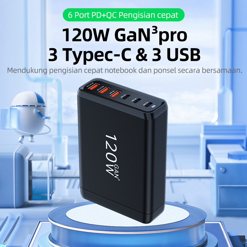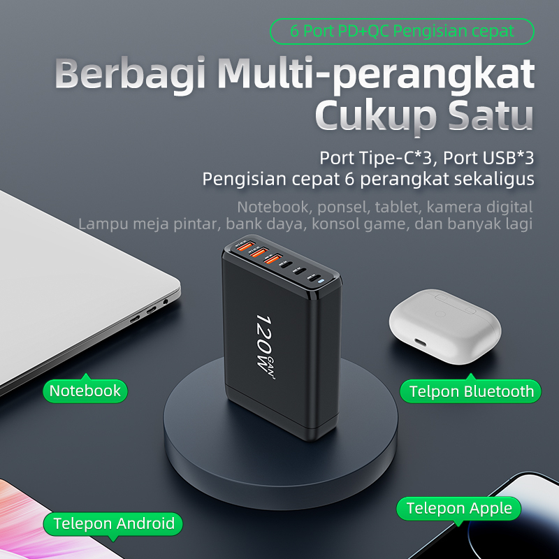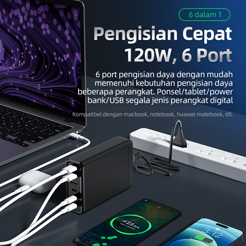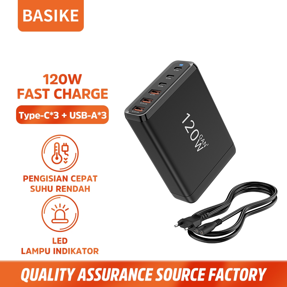 BASIKE Kepala Charger iPhone Fast Charging 120W 6 in1 GaN3 Pro Adaptor for Computer PC Laptop mobile