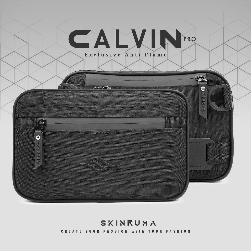 SKINRUMA Handbag Calvin Exclusive Black Waterproof / Tas Pria Multifungsi Anti Air / Clutch Bag