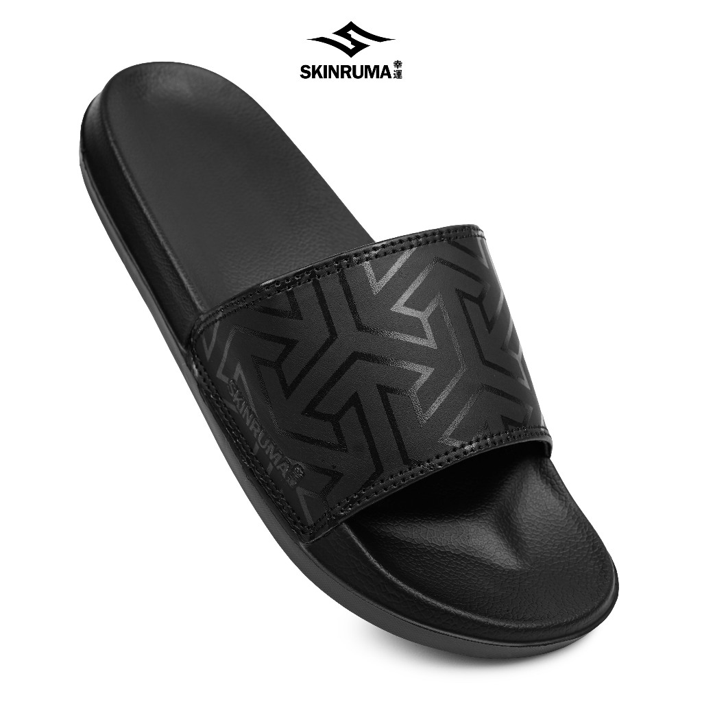 SKINRUMA Sendal Selop Karet Distro Pria Wanita Zig Zag Motive Hitam Fullblack