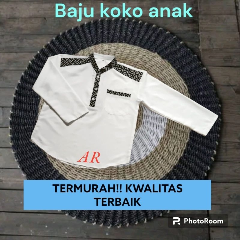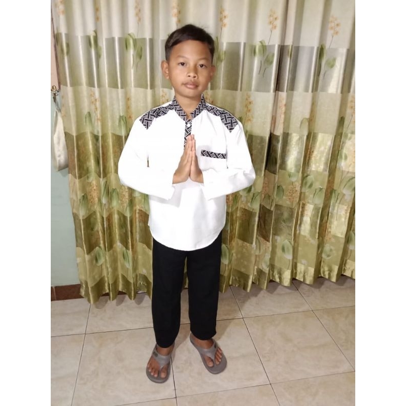 Koko Anak Laki Laki Lengan Panjang Setelan Kurta Anak Hitam-Putih Baju Muslim Anak Laki Laki