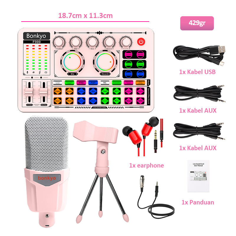 Bonkyo F999+M996 Pink Sound card 2025 Ponsel Baru Bernyanyi Peralatan Siaran Langsung Khusus Set Lengkap TIKTOK Jangkar K song Profesi Rekaman