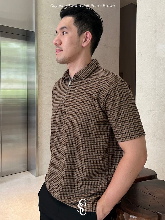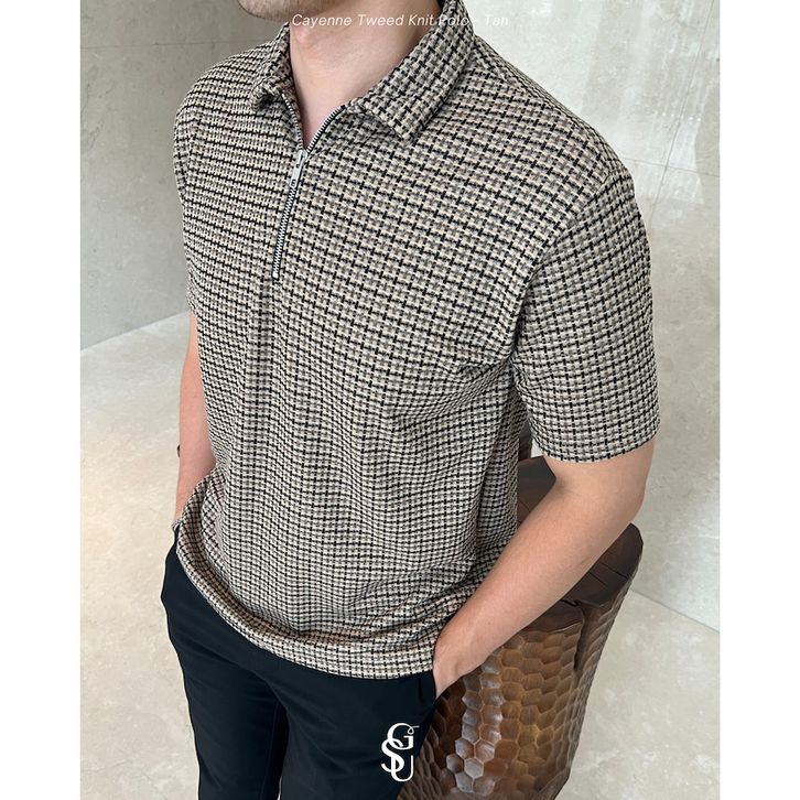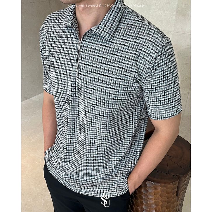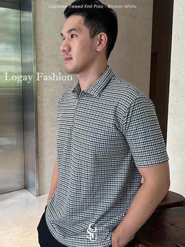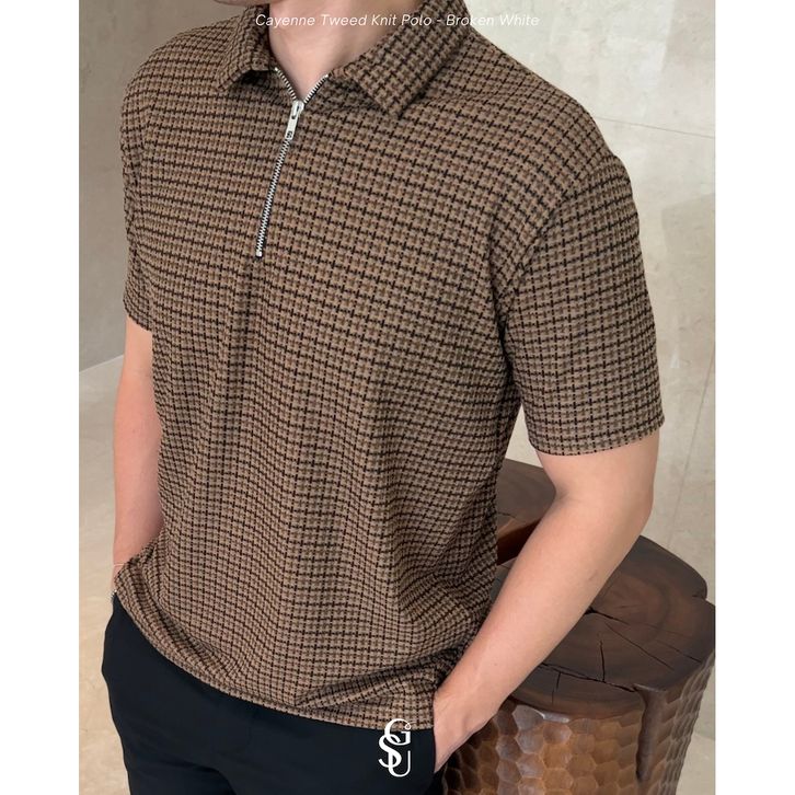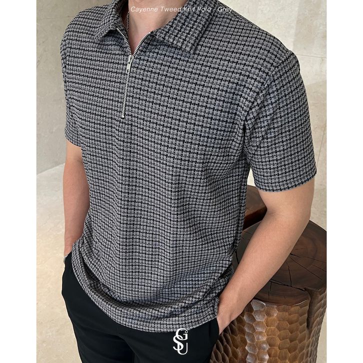 Kaos Polo Pria Lengan Pendek Cayenne Tweed Knit Kotak Kotak S-XL Bahan Premium