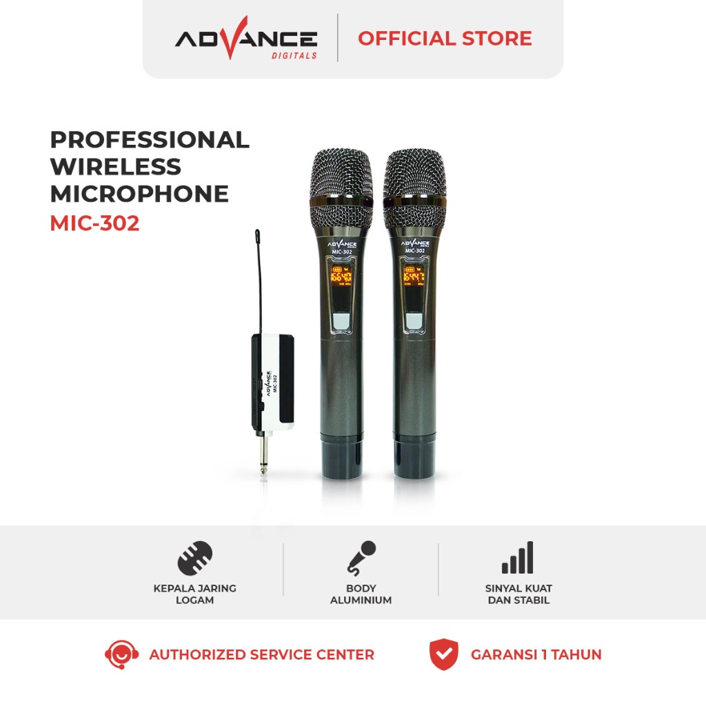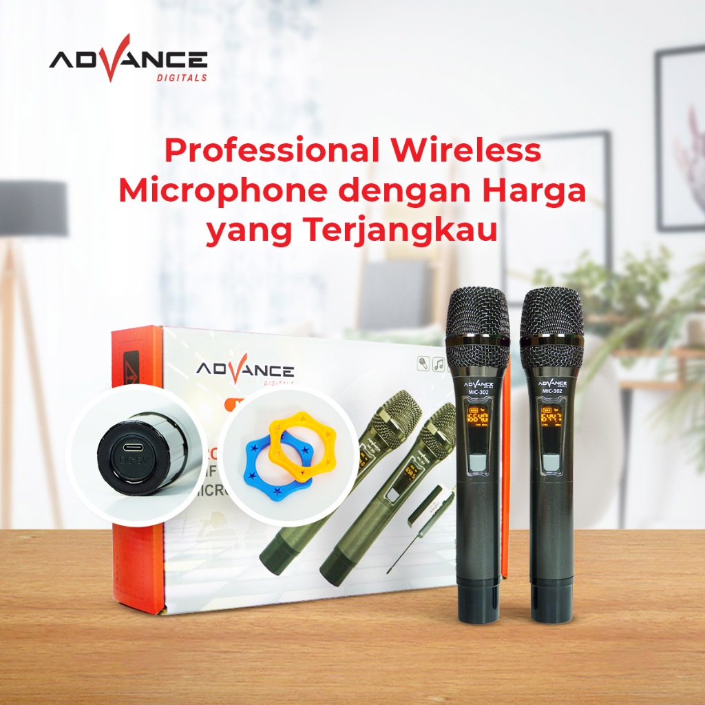 Advance Mic Wireless Microphone Mic double (Batrei dapat di Charger )UHP Digital mikropon due 301/302
