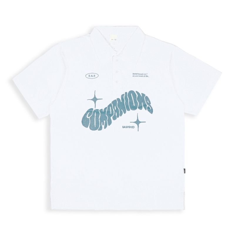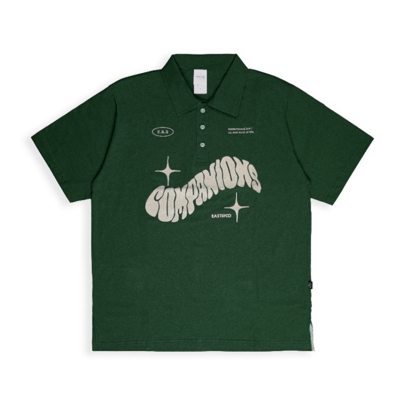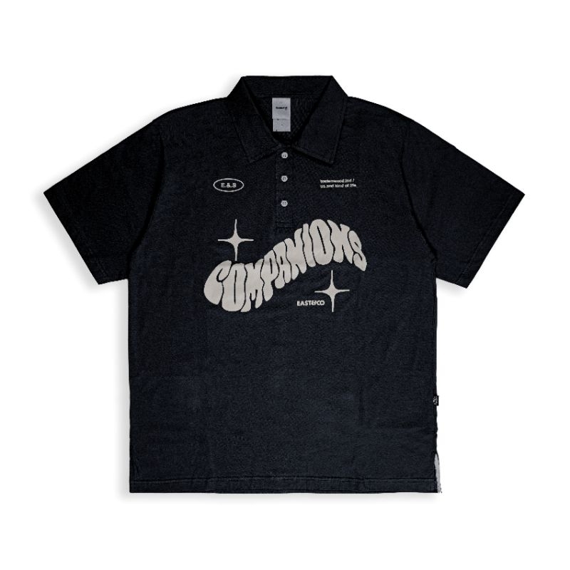 Polo Shirt Rugby Lengan Pendek Oversize Vintage Blue