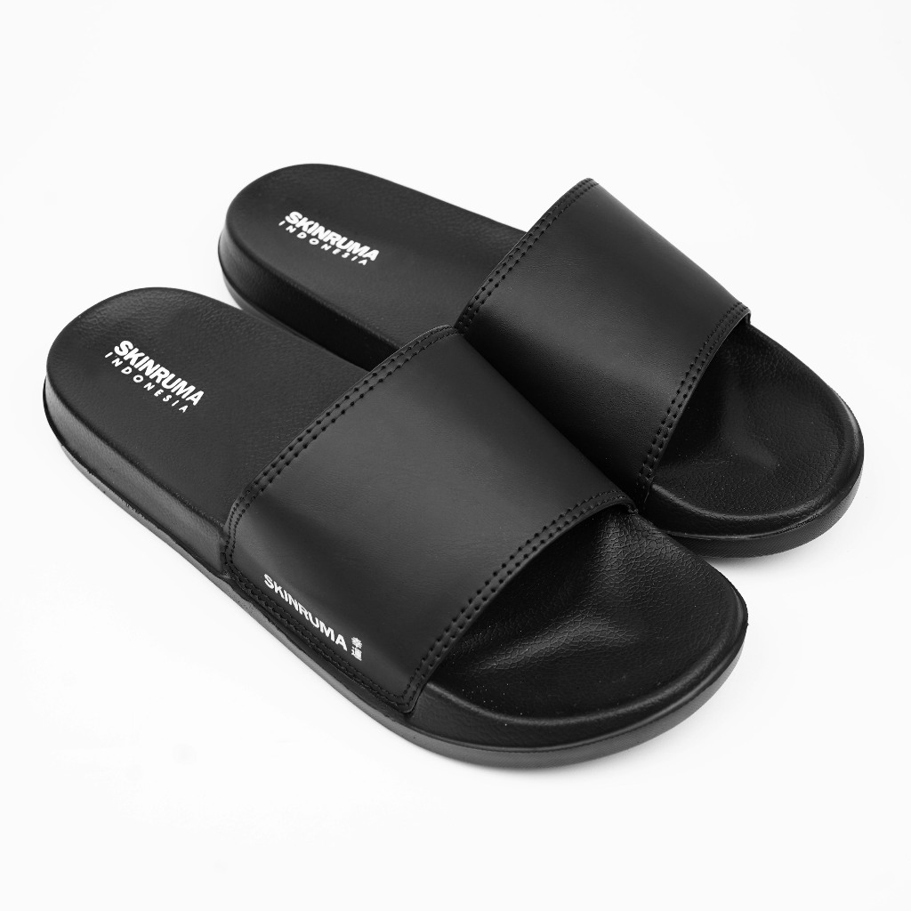 SKINRUMA Sendal Selop Karet Distro Pria Wanita Side Logo Motive Hitam