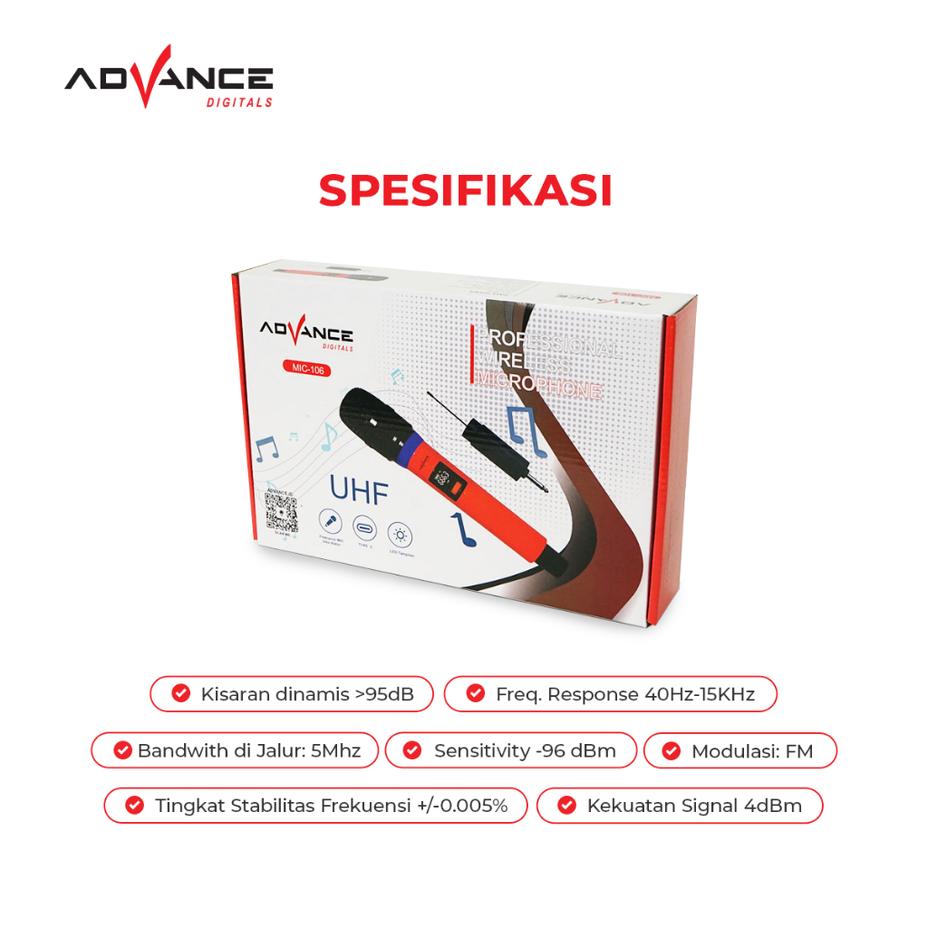 Advance Mic106 Microphone Profesional Mic Wireless Bisa di Charger / Garansi 1 tahun