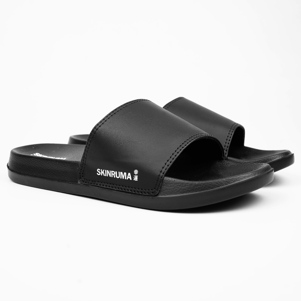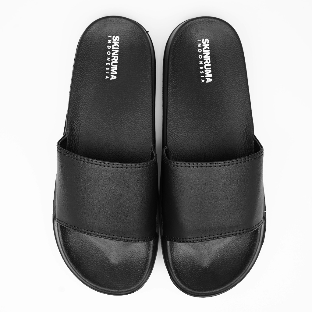 SKINRUMA Sendal Selop Karet Distro Pria Wanita Side Logo Motive Hitam
