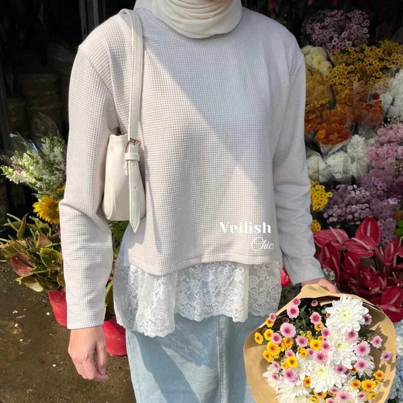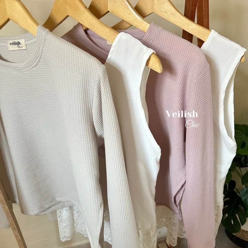 Atasan Wanita Kekinian Jennie Blouse Knit Vintage Renda Unik Blouse Korean Style Lengan Panjang Motif Polos Terlaris